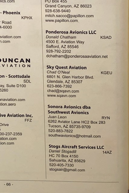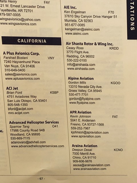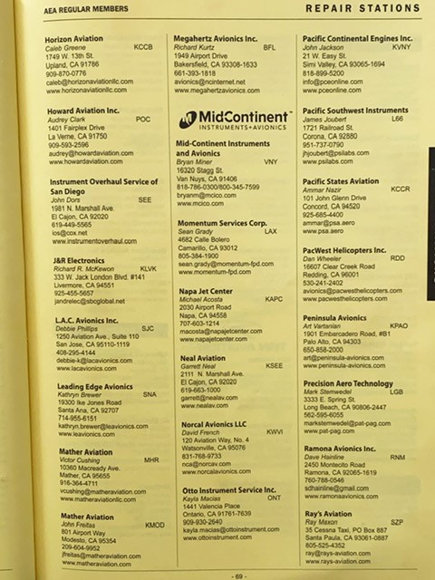 I have attached pages listing California and Arizona avionics repair stations in the AEA booklet.
