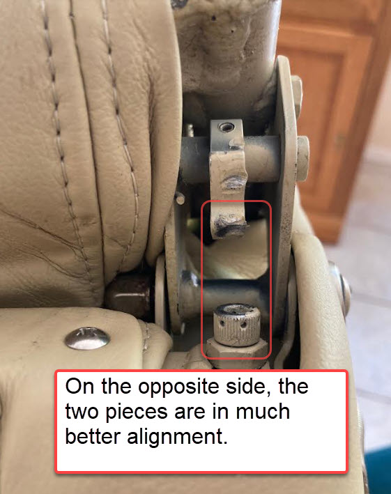 My 1978 Piper Model F Aztec has mangled seat-recline cams (or at least I think that is the name for this part) on the middle row seats. Please see attached pictures below. The seats always recline fully, and won’t stay in the full-upright position.