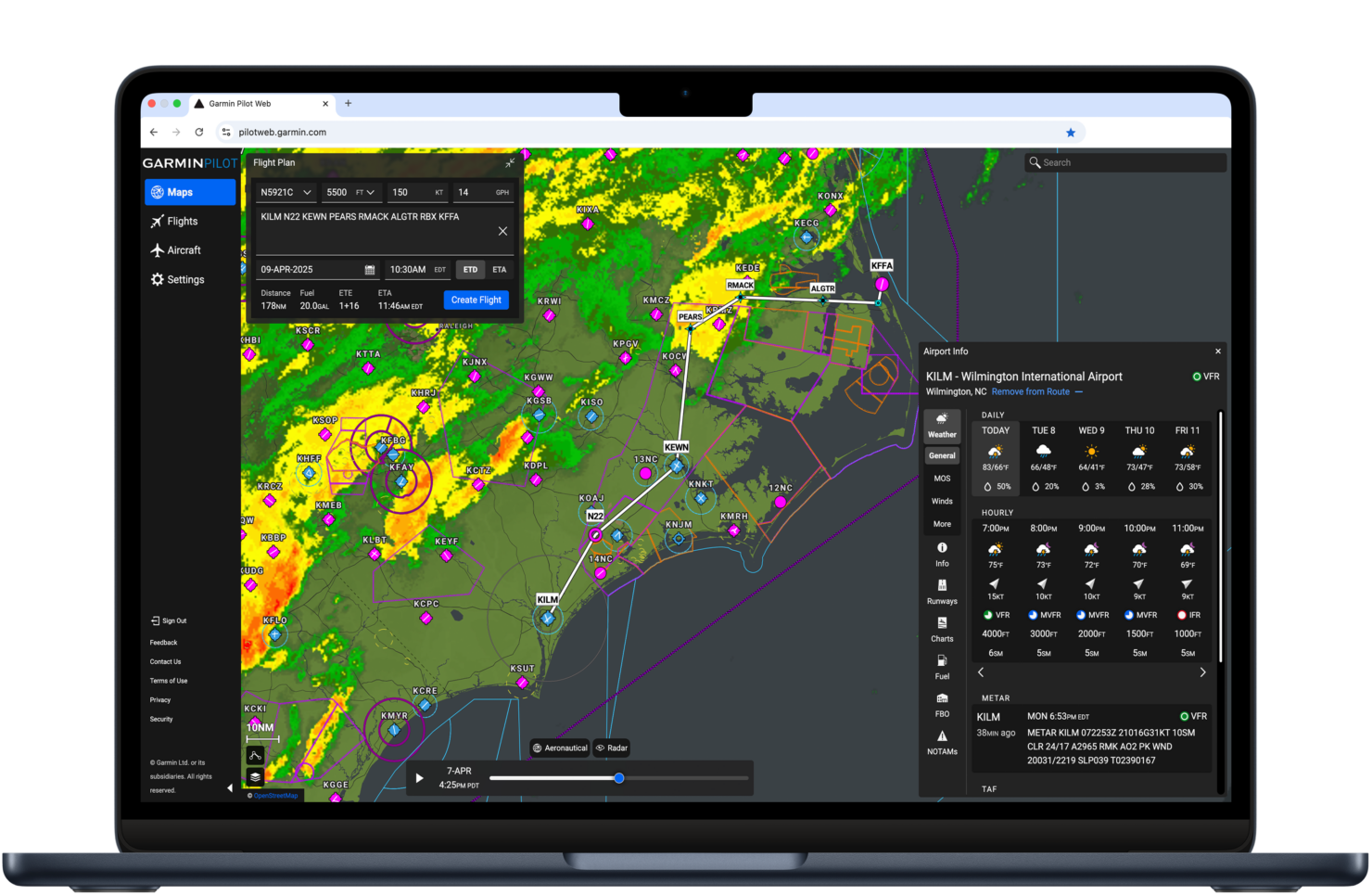 “The Garmin Pilot mobile app has always been known for incredible maps and weather overlays, and we’re excited to bring those capabilities and more to the web. If you are not already familiar with Garmin Pilot, I encourage you to give Garmin Pilot Web a try when planning your next flight. With its free, at-a-glance tools – you will find it can greatly simplify your online flight planning workflow.
