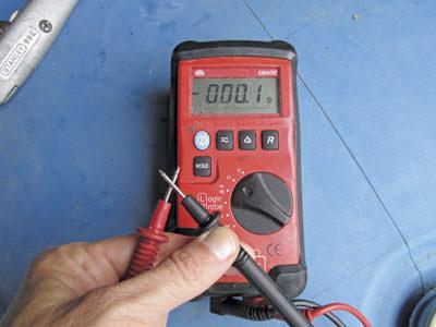 Before taking any measurements, it is a good idea to set the meter to the lowest ohms setting and touch the test leads together. This tests the connection of the leads to the meter and also the continuity of the test lead wires as well as the internal resistance of the meter. The reading should be zero ideally, but in any case it shouldn’t be much over one ohm.