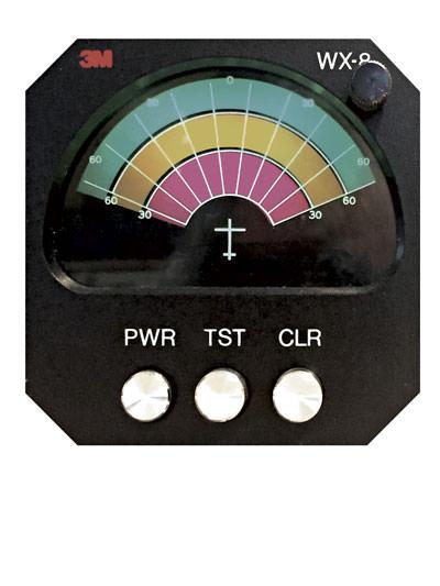 The WX-8 was a simplified unit that displayed a 135-degree forward-looking arc divided up into radial segments with three pseudo range rings that lit up green, orange or red depending on the intensity of the strikes detected.