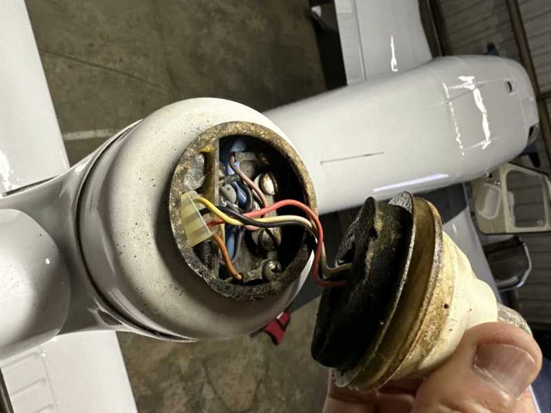 My Cherokee 235 has Whelen old-style strobes in the beacon and on the belly for anti-collision. The belly is a clear dome lens. The beacon strobe is a split white/red lens. The beacon split lens was compromised years ago–I’m surprised it lasted as long as it did. After I got it off, I found the strobe moist, covered in mold and nastiness and some corrosion on the metal plate. I disconnected the strobe (3-pin plastic connector) and the connectors did not look too bad.