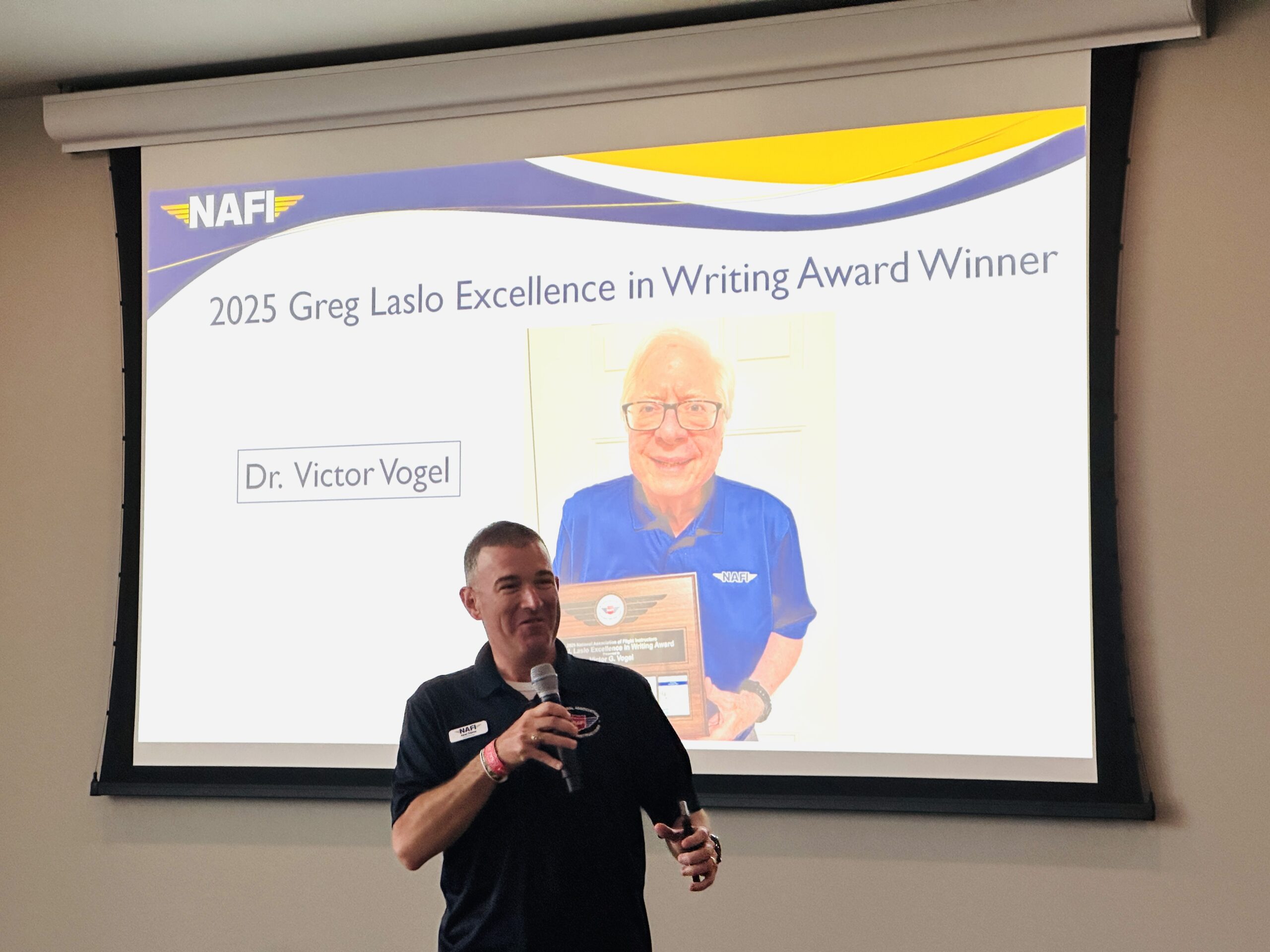 NAFI extends sincere congratulations and deepest appreciation to Vogel for his outstanding contributions to aviation writing and education through NAFI publications. His ongoing contributions continue to make a lasting impact on flight instruction and aviation safety.