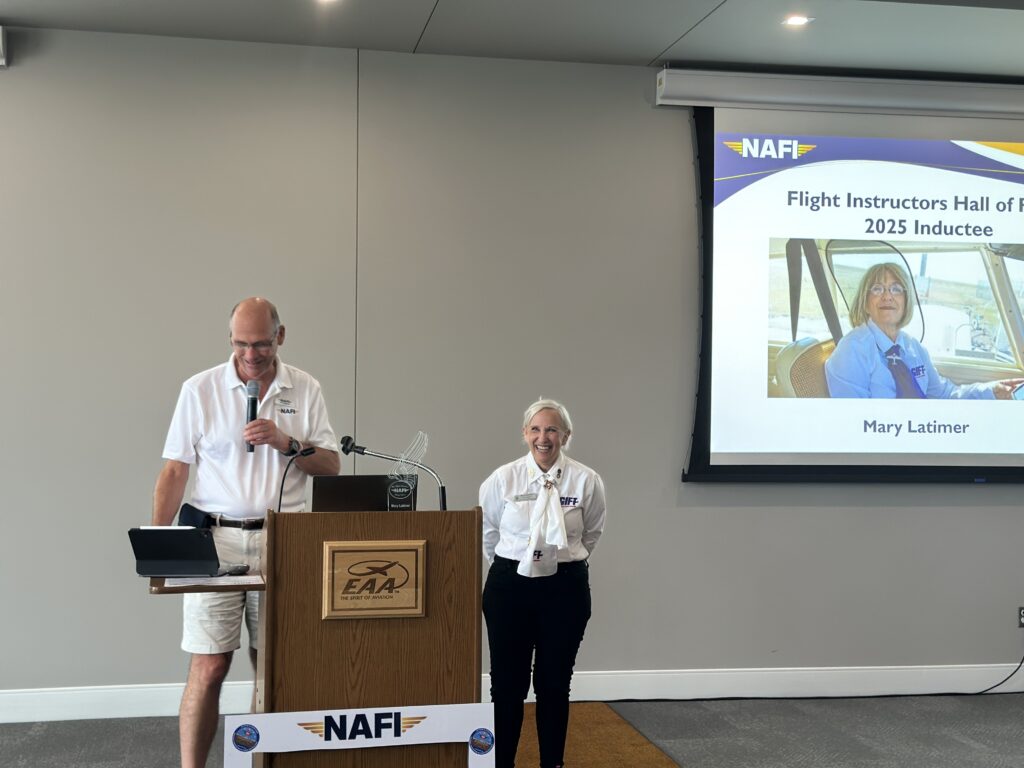 The Flight Instructor Hall of Fame in 2025 inducted Mary Latimer, a flight instructor and educator from Texas. The Hall of Fame recognizes each year instructors who demonstrate significant contributions to professionalism in the aviation training industry and improvement of pilot technique to further reduce the accident rate in general aviation. Latimer was honored at the NAFI breakfast in Oshkosh as well.