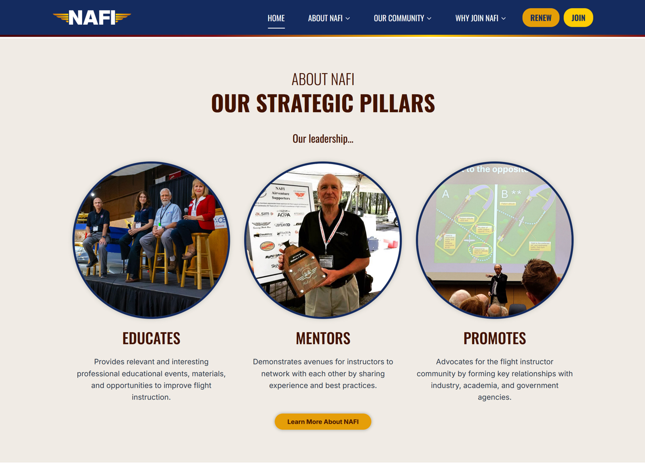Portage, Mich. — March 3, 2025 The National Association of Flight Instructors (NAFI) launched its new website on March 1, with an updated look and additional features.