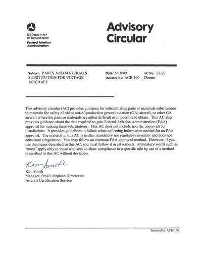 Substitute parts under Advisory Circular No. 23-27