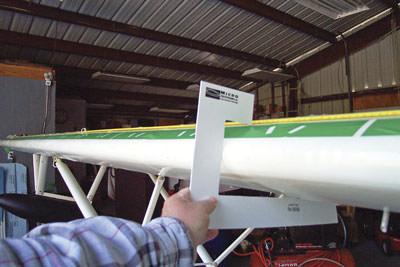 The vanes, which are glued on, are not difficult to install, but they must be placed in a precise line with accurate spacing. Micro AeroDynamics provides a peel-and-stick template that helps—but it, too, needs to be accurately placed. A good compromise she suggested is having the mechanic apply the template to the wing and then the owner can do the tedious part of gluing all the vanes into place.