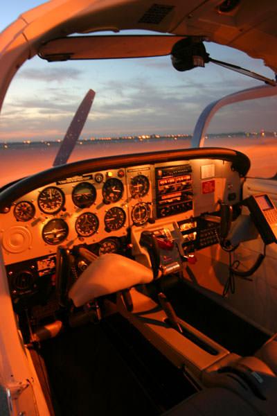 For night flying, the instrument panel was lit by a red floodlight on the ceiling, just behind the trim crank, which was also on the ceiling and looked like a window crank from a 1950s Chevy (and probably was). It was perfect. I felt like I had stepped into an Ernie Gann novel.